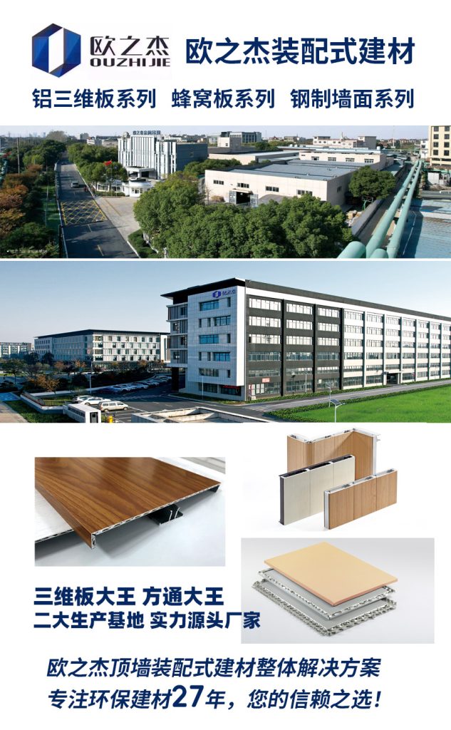 歐之杰裝配式建材、工程頂墻找歐之杰專注環(huán)保建材27年,鋁三維板、蜂窩鋁板、鋁瓦楞板、鋼質(zhì)墻板、A2防火板、鋁單板